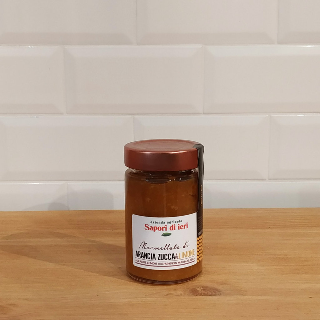 Una confettura fuori dal comune, in cui la dolcezza della zucca incontra la vivacità del limone e la freschezza dell’arancia. Il risultato? Un equilibrio perfetto tra intensità aromatica e morbidezza, con piccoli pezzetti di scorza tagliata a mano per un tocco rustico e autentico.